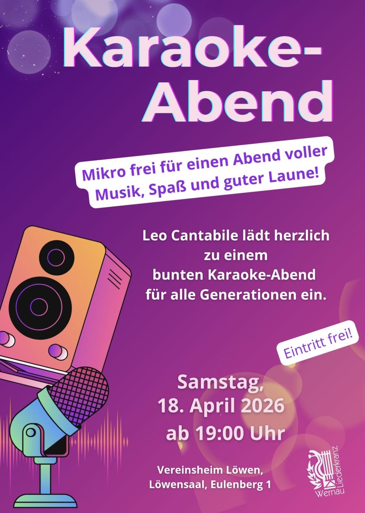 Egal ob du unter der Dusche zum Superstar wirst, heimlich im Auto mitsingst oder einfach nur einen lustigen Abend mit Freunden oder Familie verbringen möchtest, bei unserem Karaoke Abend ist JEDER wilkommen.